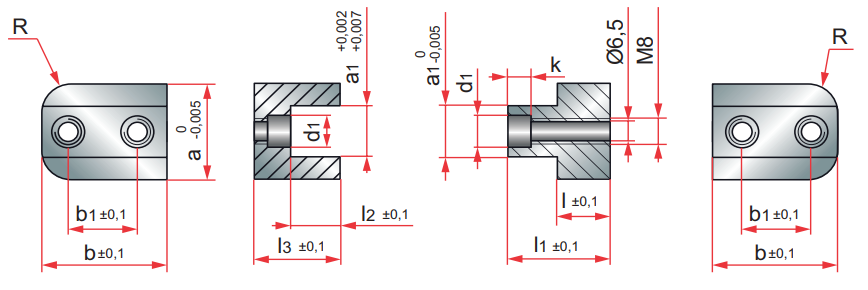 Elemento de centragem simplificado, ideal para moldes pequenos com espaços limitados, área de montagem de 30x38mm.