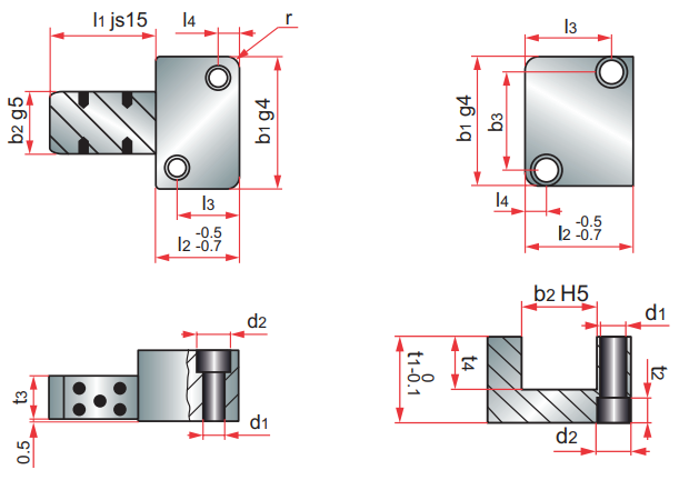 Centralizador lateral com insertos de grafite no macho, comprimentos de macho que permitem auxiliar a bucha com considerável precisão. Componentes robustos e resistentes ao atrito.