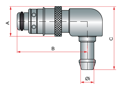 Engate rápido a 90º com travamento por esferas e anel oring.