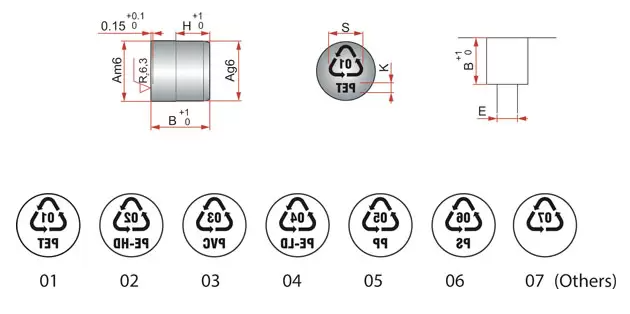 Inserto de reciclagem pronto para montagem em moldes, possui indicação de diferentes materiais e estão disponíveis em 4 diferentes diâmetros.
