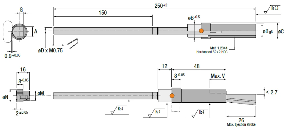 •  Curso de desmoldação máximo – 2.7 mm.