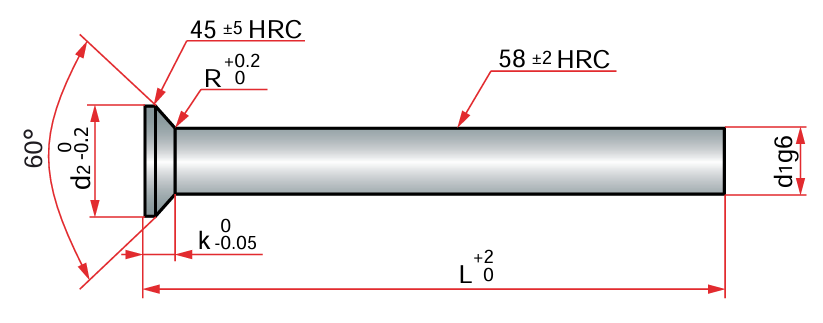 Extratores em aço DIN 1.2210, com dureza de núcleo e superfície de 58 a 62HRC, para temperatura de trabalho no máximo de 220º C. Dimensões de 1,00 até 16mm e comprimentos de até 315mm.