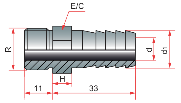 Plug macho convencional de refrigeração para montagem em mangueiras.