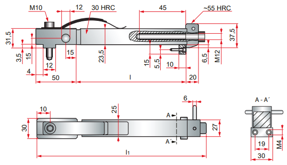 Tirante com tamanhos de 70 a 270mm para movimentação de placas, 6 versões de tamanhos, pronto para ser montado no molde.